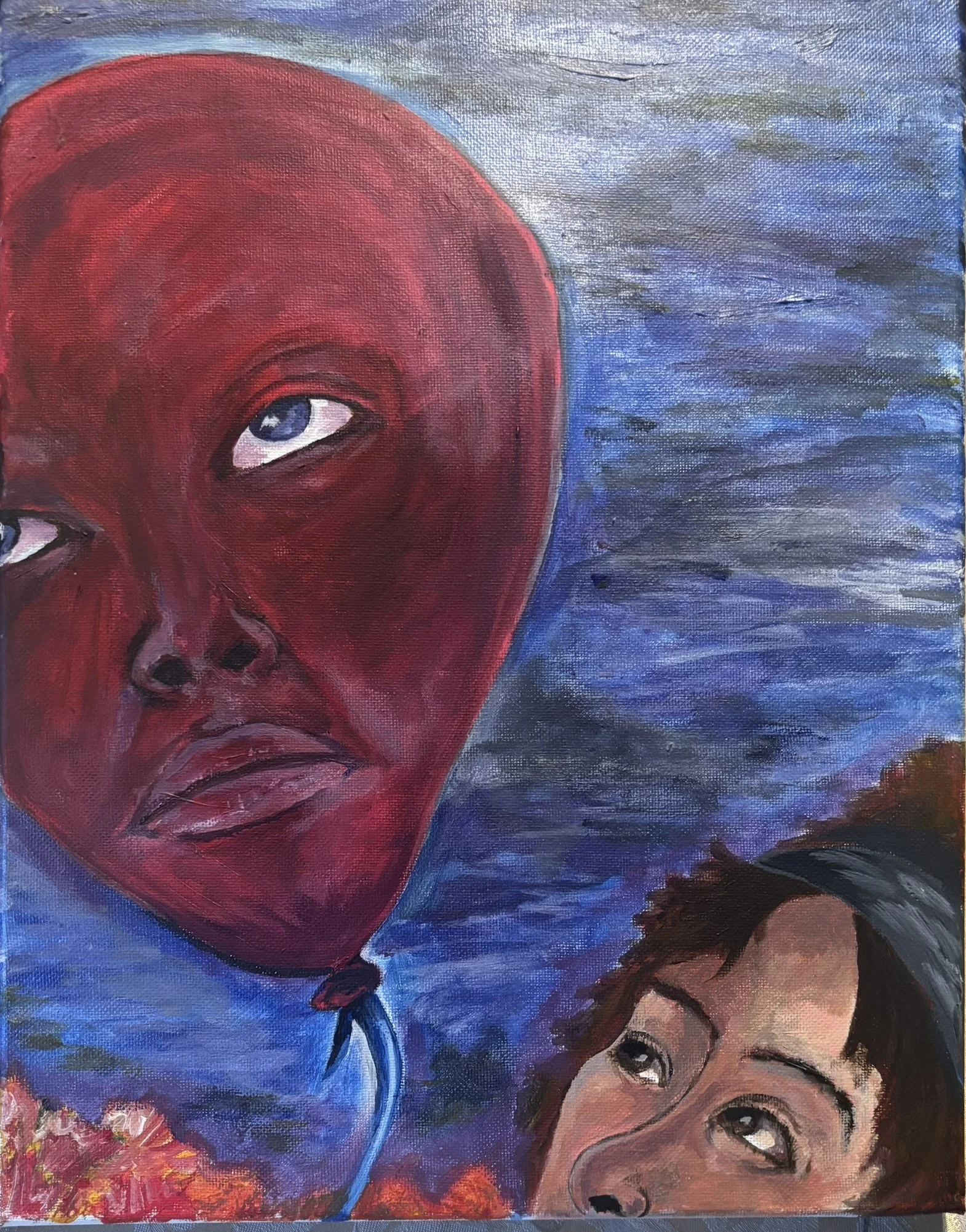 Part imagination, part introspection—like a thought or feeling drifting just overhead, the girls friend leaves the situation.